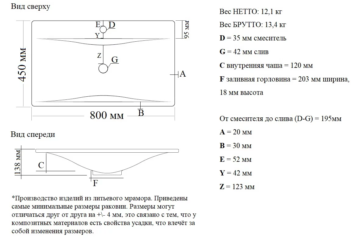 Диаметр сливного отверстия, мм