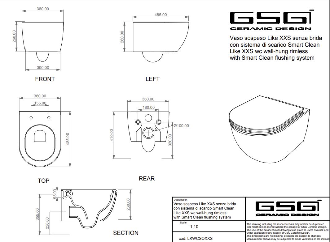 Унитаз подвесной GSG Ceramic Design Like LKWCSOXXS001 укороченная купить в Витебске, цена