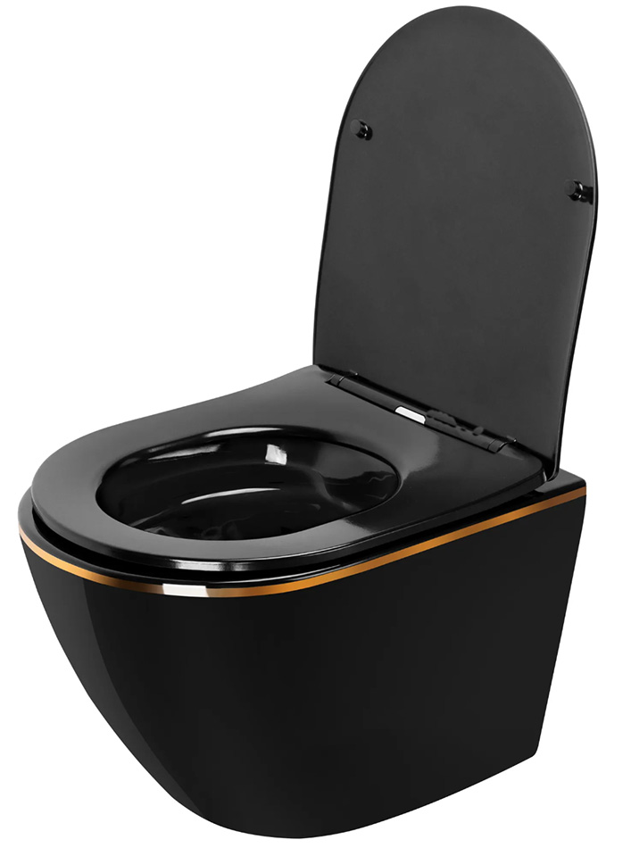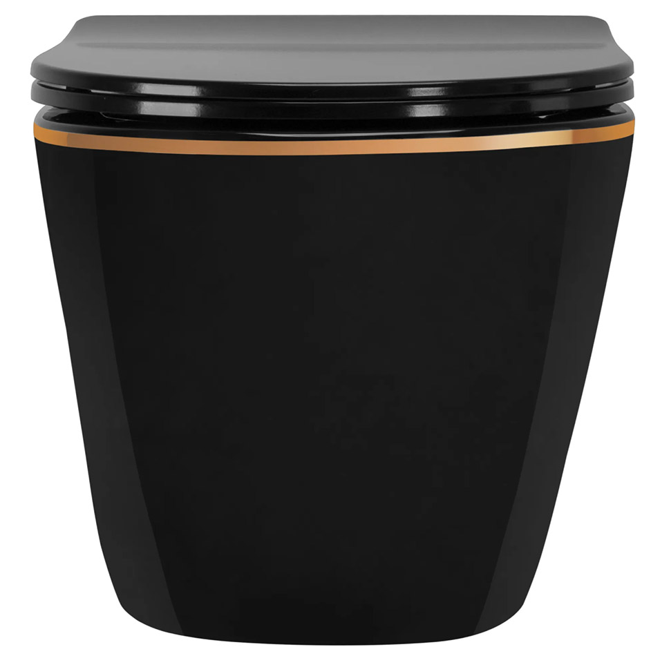 Унитаз подвесной Rea Carlo Mini rimless Flat Black Gold Edge C8800