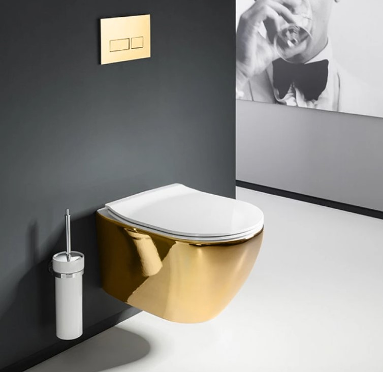 Унитаз подвесной Rea Carlo Mini Rimless Gold White C0669