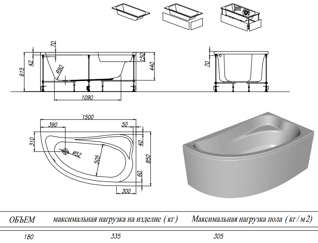 Ванна акриловая Kolpa-San Calando 150x85 L купить в Витебске, цена