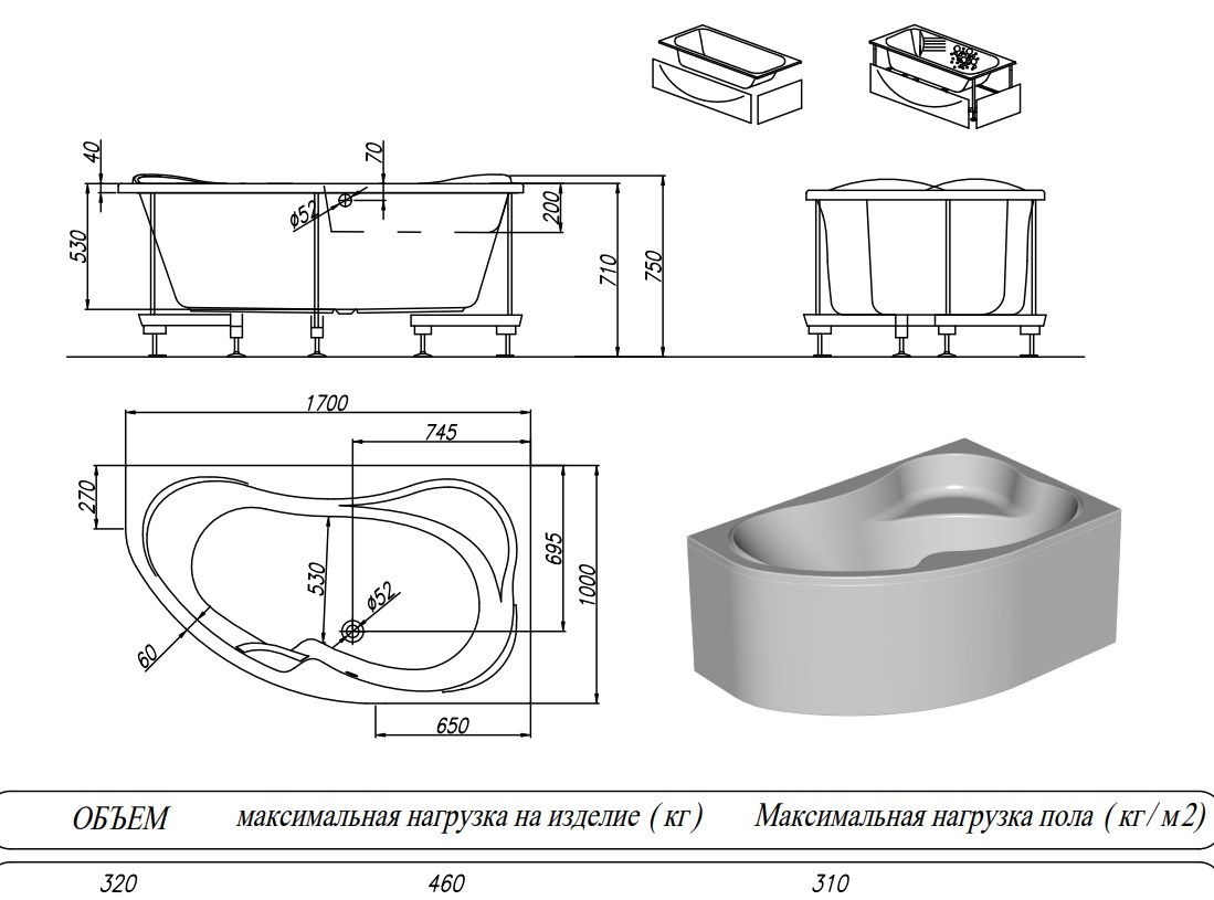 Ванна акриловая Kolpa-San Lulu 170x100 L купить в Витебске, цена
