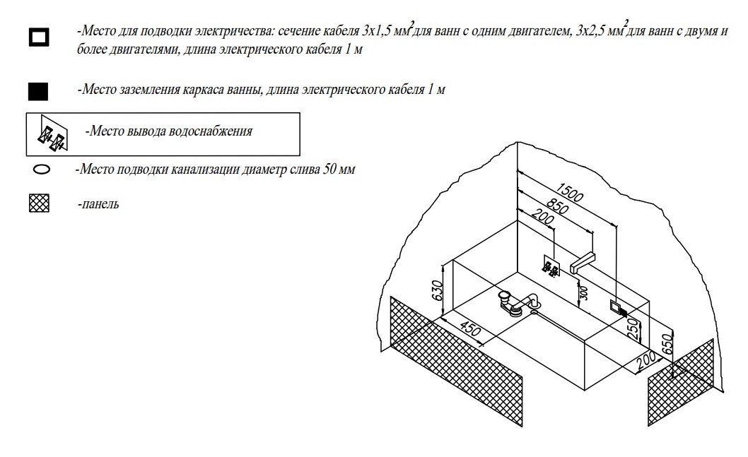 Ванна изготовлена из высококачественного акрила Lucite с толщиной листа не менее 4 мм, имеет безупречный внешний вид и долгий срок службы