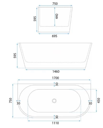 Ванна акриловая Rea Capri 1700 W9801 купить в Витебске, цена