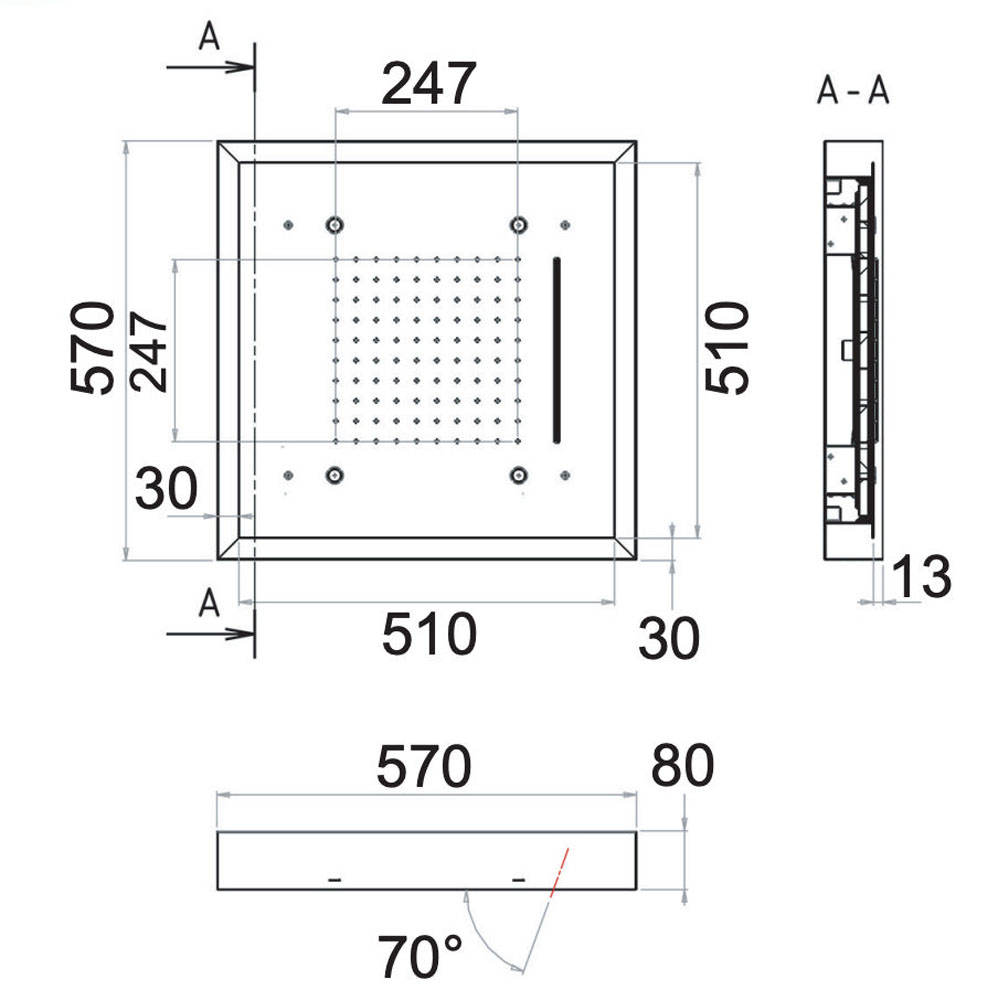 Верхний душ потолочный с подсветкой 57 см Remer 357LS57NC купить в Витебске, цена